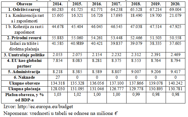 Tabela 1. Višegodišnji finansijski okvir EU 2014-2020. godine