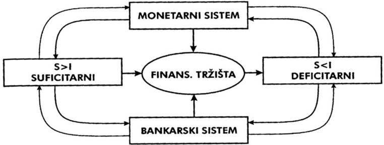 Slika 1. Povezanost suficitarnih i deficitarnih sektora u privredi i tržišta novca i kapitala