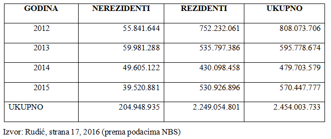 Izvor: Rudić, strana 45, 2016 (prema podacima NBS)