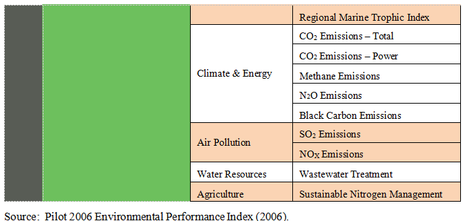 18.Yale Center for Environmental Law & Policy and The Center for International Earth Science Information Network (CIESIN) at Columbia University’s Earth Institute. 2006 Pilot 2006 Environmental Performance Index. New Haven: Yale Center for Environmental Law & Policy and The Center for International Earth Science Information Network (CIESIN) at Columbia University’s Earth Institute. Retrieved from: