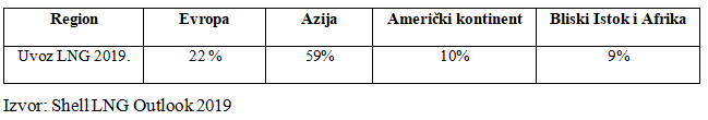 Tabela 2. Uvoz tečnog gasa po regionima u 2019. godini