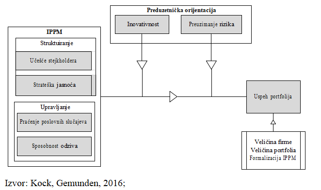 Kao refernetno istraživanje uzeto je istraživanja koje su 2016. godine Kock i Gemunden izvršili u Nemačkoj na temu uticaja strateškog opredeljenje organizacije na vezu između procesa IPPM i poslovnog uspeha. Rezultati istraživanja su objavljeni u radu na R&D Management konferenciji u Kembridzu, Velika Britanija (Kock, Gemunden, 2016). Autori istraživanja se već duži niz godina bave izučavanjem problematike IPPM i primećuju da ima svega nekoliko istraživanja koja proučavaju šta doprinosi uspehu IPPM i koje to organizacione poluge utiču na uspeh. Jedan od nedovoljno istraženih faktora je strateška orijentacija firme, iako sva dosadašnja istraživanja govore da je IPPM važno sredstvo za ostvarenje inovacione i poslovne strategije. Ovde ukazuju da još uvek nema naučnih saznanja kako različite strateške orijentacije utiču na IPPM i njegove performanse, kao i celokupni poslovni uspeh. U svojoj studiji ističu koncept preduzetničke orjentacije (eng. EO-entrepreneurial orientation) kao posebno važan faktor strateške orijentacije, zbog svoje izuzetno naglašene inovativnosti i visokog preuzimanja rizika, i istražuju njegov uticaj na odnos između IPPM i poslovnog uspeha.