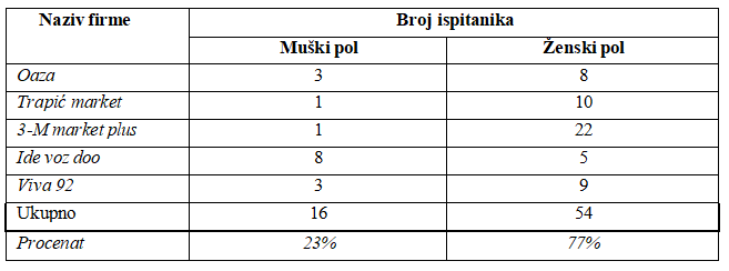 Tabela 1. Distribucija ispitanika prema nazivu firme u kojoj su zasnovali radni odnos
