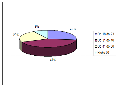 Istraživanje pokazuje da najviše ispitanika pripada starosnoj grupi od 31 do 40 godina (grafikon 1).