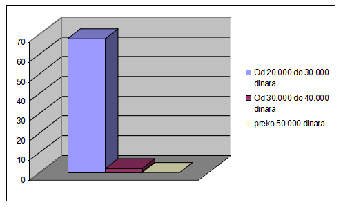 20.000 do 30.000 dinara. U datom uzorku nije bilo ispitanika sa mesečnom zaradom preko 50.000 dinara (grafikon 3).