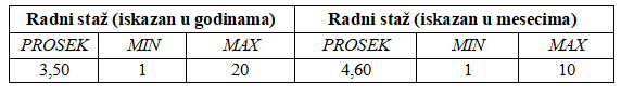 Tabela 3. Prosek ostvarenog radnog staža ispitanika (samo u trenutnoj firmi)