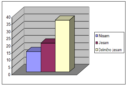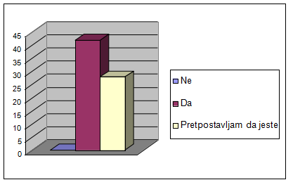 Na pitanje Da li je po Vašem mišljenju tačna sledeća izjava: Održivi razvoj se ogleda u tome da prilikom rada i bitisanja na planeti Zemlji ne mislimo samo na nas već i na budućnost naše dece, 60% ispitanika se slaže sa navedenom izjavom, dok 40% njih samo pretpostavlja da je data izjava tačna (grafikon 5).