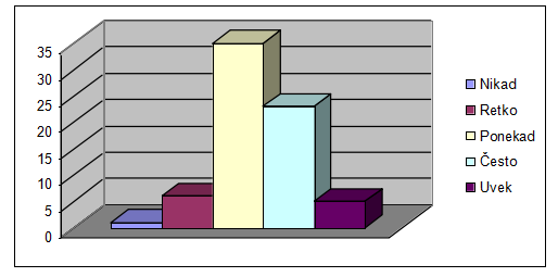 Mnoga uspešna preduzeća širom sveta izdvajaju značajne sume novca za različite donacije i sponzorstva, pri čemu podržavaju brojne projekte u oblasti zdravstva, sporta, obrazovanja, nauke i kulture (Krstić, 2020). Kada je reč o izabranim trgovinskim preduzećima na teritoriji grada Kruševca, 54% ispitanika smatra da su ista uglavnom aktivna na poljima sponzorstva i humanitarnih projekata (grafikon 7).