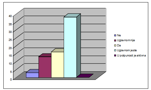 Grafikon 7. Mišljenja ispitanika o tome da li je firma u kojoj trenutno rade aktivna na poljima sponzorstva i humanitarnih projekata