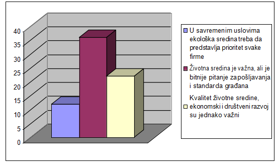 Nastanak ekološke krize podstaknut pitanjem da li životna sredina može da istrpi negativan uticaj neadekvatnih aktivnosti brojnih nepažljivih preduzeća pokrenuo je potrebu za razvojem svesti o značaju ekološkog segmenta održivog razvoja. Iz tog razloga jedno od pitanja u anketi odnosilo se i na utvrđivanje stepena u kome su za zaposlene u trgovinskim preduzećima u Kruševcu značajna pitanja zaštite životne sredine. Iznenađuje činjenica da svega 17% ispitanika smatra da bi ekološka sredina trebalo da predstavlja važan segment u poslovanju trgovinskih preduzeća (grafikon 9).