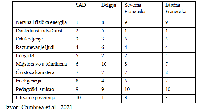 Tabela 1. Svojstva idealnog rukovodioca (za potrebe privrede) rangirana prema redosledu kako su ga definisali rukovodioci raznih zemalja.