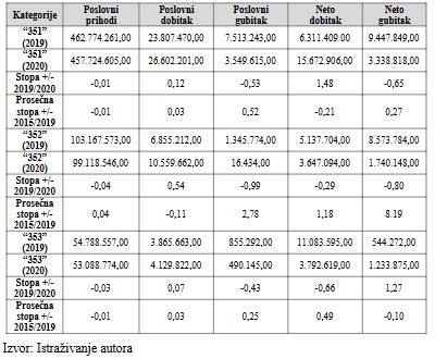 Dalje istraživanje nastavljamo analizom profitne i finansijske pozicije po podsektorima „351”, ”352” i „353” Sektora D, a analizom dobijenih rezultata iz Tabele 3 moguće je istaći sledeće ocene: