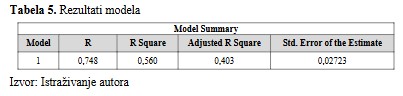 Tabela 5. Rezultati modela