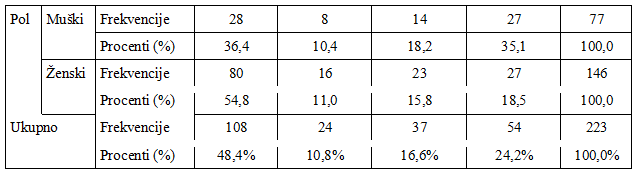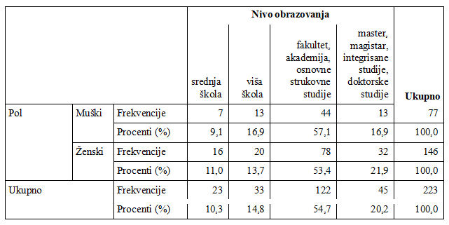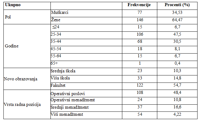 Tabela 1. Socio-demografska struktura ispitanika (n =223)