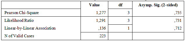 Podaci dalje ukazuju da, kada je reč o nivou dostignutog obrazovanja, nema značajne razlike između muških i ženskih ispitanika. Naime, praktično je isti odnos rezultata, kada je u pitanju stečen nivo obrazovanja, što potvrđuje rezultat hi-kvadrat testa u tabeli 3 (χ2 (3, N = 223) = 1,28, p =,74, dakle p vrednost je znatno iznad,05, čime se hipoteza H1, prema kojoj žene u sektoru turizma imaju viši nivo obrazovanja od svojih muških kolega, odbacuje.