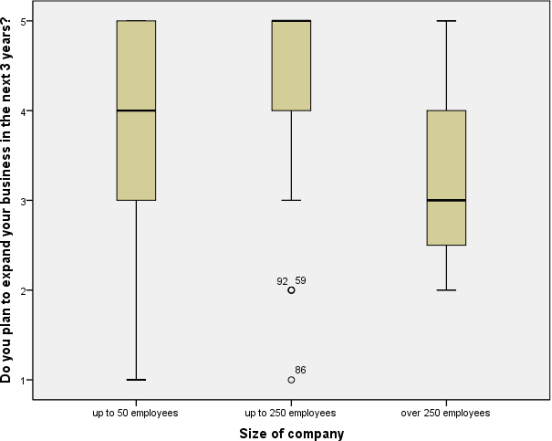When looking at the assessment of business expansion in the next three years, the highest average score is for companies with up to 250 employees, for which the