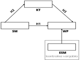 The model consists of 4 constructs: use of social networks, knowledge sharing and work performance as dependent variables, experience in using social networks is a control variable (Savić et al., 2024). In the following text, SM denotes use of social networks; KT knowledge sharing; WP work performance, while ESM experience in using social networks.