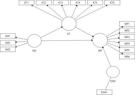 Note: SM- Social Media Use at Work; KT- Knowledge Sharing; WP- Work Performance; ESM- Social Media Experience.