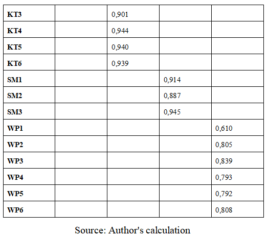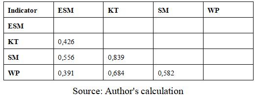 Note:SM- use of social networks at work; KT- knowledge sharing; WP- work performance; ESM- Experience on social networks.