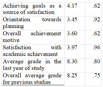 Statistically significant positive correlations of all dimensions as well as the overall achievement motive on the one hand and academic success indicators on the other were established. Students who are persistent in achieving their goals and want to stand out in front of others have higher academic success. Also, students who plan their activities to achieve goals and feel satisfaction when they achieve them have higher academic achievement. On the other hand, students with a low achievement motive, are not persistent in achieving their goals, do not find satisfaction in their fulfillment, and have little academic achievement. It is the same with students who do not plan to fulfill their obligations at the university and do not try to stand out in front of others; they have lower academic performance.