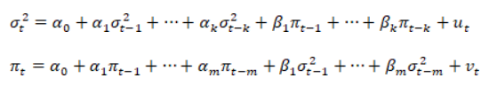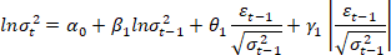 Nelson je predstavio eksponencijalni GARCH process ili EGARCH model za uslovnu varijansu, koji uzima u obzir efekat asimetrije. Nelsonov model inflatorne neizvesnosti može se predstaviti na sledeći način: (Nelson, 1991)