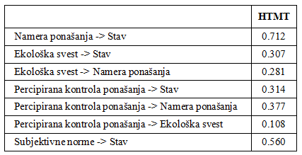 Tabela 2. Diskriminantna validnost - HTMT pristup