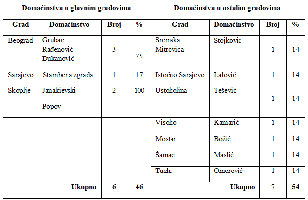Analiza studija slučaja domaćinstava u zemljama Zapadnog Balkana pokazala je da su zastupljene studije slučaja porodica koje žive u glavnim gradovima (Tabela 4.). U Srbiji je 75% domaćinstava iz glavnog grada, dok je u Severnoj Makedoniji 100%. Za razliku od ovih zemalja, u Bosni i Hercegovini postoje studije slučajeva iz različitih gradova i teritorijalno su podjednako zastupljene. Značaj preduzimanja mera unapređenja energetske efikasnosti u velikim i glavnim gradovima je veliki, zato što je u njima najveće zagađenje životne sredine. Intenziviranje preduzetih mera uz korišćenje kredita za energetsku efikasnost i podsticaja EU u ovim gradovima je neophodno. Sa druge strane, postojanje primera uspešne implementacije mera energetske efikasnosti i ušteda u manjim mestima utiče na razvoj svesti ljudi koji žive u različitim delovima zemlje o prednostima korišćenja energetski efikasnih tehnologija, mogućnostima i uslovima njihovog finansiranja iz kredita za energetsku efikasnost i sredstava podsticaja.