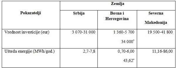 Napomena: * period povraćaja investicije (godine) ili ušteda (eur)