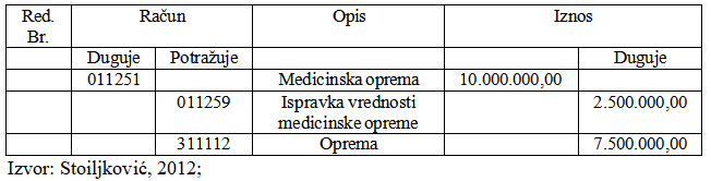 Tabela broj 1: Primer knjizenja u skladu sa МRS – ЈS 16.