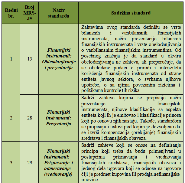 Tabela 2. Sadržina IPSAS koji računovodstveno regulišu finansijske instrumente