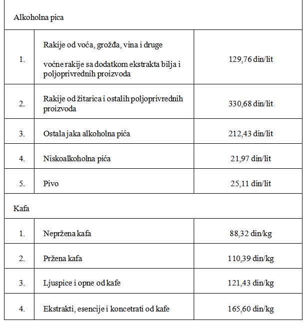 Tabela 1. Iznosi i stope akciza