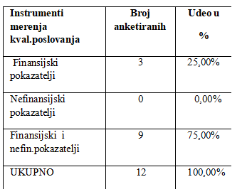 U nastavku anketnog upitnika, ispitanici su se izjasnili o tome koje instrumente merenja kvaliteta poslovanja koriste pri proceni kvaliteta poslovanja.