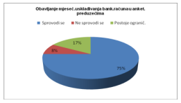 Za poslovanje bilo kojeg preduzeća bitno je posedovati i kontrolu nad stanjem svih bankovnih računa kako bi se stvorila što bolja slika o sredstvima preduzeća. Stoga je bitan i podatak o tome da li se u anketiranim preduzećima sprovode mesečna usklađivanja bankovnih računa.