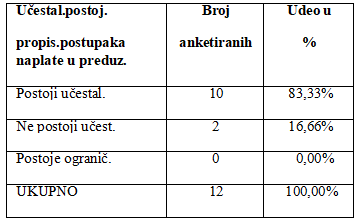 Tabela 10. Str. odgovora : učestalost posto. propisanih postupaka naplate u preduzećim.