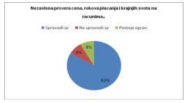 Naredno anketno pitanje odnosilo se na to da li u anketiranim preduzećima u nadležnost interne kontrole i ostalih delova koji se bave nadzorom ulazi i nezavisna provera cena, rokova plaćanja i krajnjih svota na rčunima.