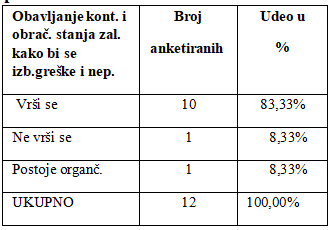 Tabela 12. Str. odgo: obavlj.kont. i stanja zaliha kako bi se izbegle greške i nepravilnosti