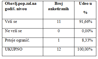Kao što se vidi iz tabele 19 sva anketirana preduzeća su odgovorila kako to redovno rade. Ovo upućuje kako se sva posmatarana preduzeća pridržavaju propisa.