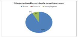 Kontrola zaliha je jedna od stavki interne kontrole. Stoga je važan podatak da li se u anketiranim preduzećima obavlja kontrola i obračun zaliha kako bi se izbjegle nepravilnosti u poslovanju.