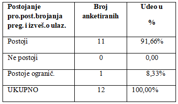 Konzistentnost u odgovorima vezanih uz kontrolu zaliha se uočava i pri analizi rezultata ankete na pitanje da li u anketiranim preduzećima postoji propisani postupak brojanja, pregleda i izveštavanja o ulazu robe na zalihe.