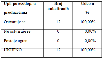 Uvid u to da li se u anketiranim preduzećima vrši uplata poreza i doprinosa u skladu sa propisima prilikom sprovođenja interne kontrole je od velike važnosti, jer se reguliše odnos preduzeća prema svojim radnicima, ali i zakonskim obvezama, što umanjuje rizik poslovanja.