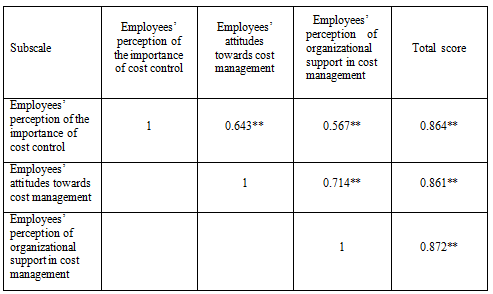 Table 3. Correlations between subscales and the overall score of employees’ statements and perceptions on cost management in transport companies