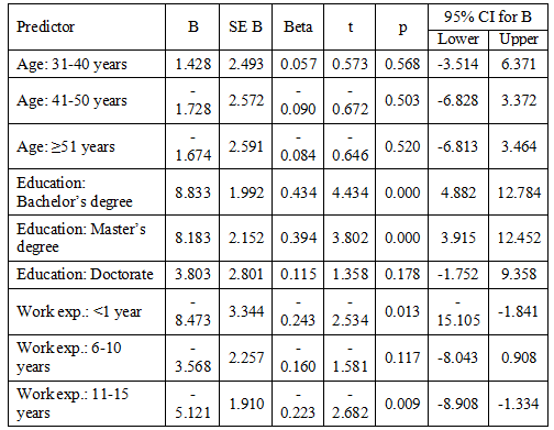 Table 5. Results of linear regression analysis with the overall cost management score as the dependent variable (N = 120)