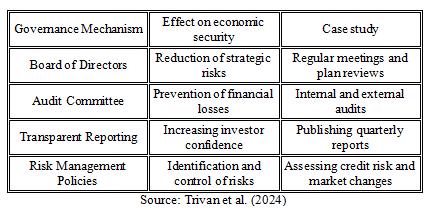 According to Trivan et al. (2024), the key mechanisms through which corporate governance contributes to economic security are: