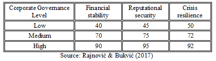 Empirical indicators of the relationship between governance and security - Research shows that companies with a high level of corporate governance development record significantly better financial results, greater reputation in the market and greater resilience to crisis situations (Savić et al., 2024; Paspalj et al., 2024). These empirical data confirm theoretical assumptions about the key role of corporate governance in preserving economic security.