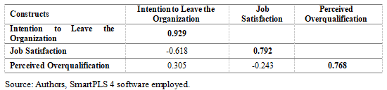 Table 4. Verification of constructs’ discriminant validity (Fornell-Larcker criterion)