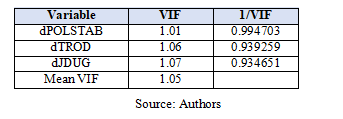 After the variables were brought to the same level of stationarity, a multicollinearity check was conducted on the panel data.