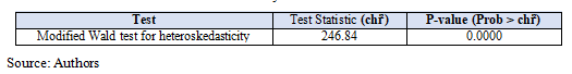 The final test conducted was the heteroskedasticity test, which was performed using the Modified Wald test (xttest3). The results are presented in the following table.